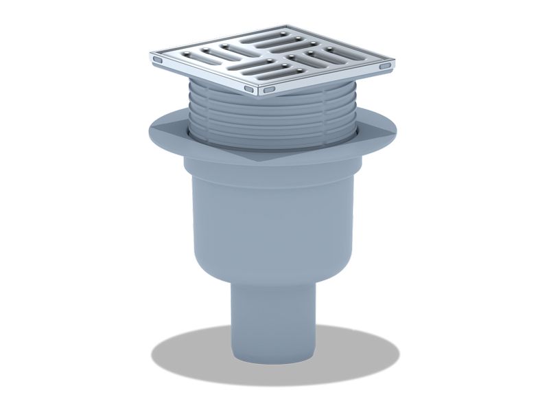 Трап вертикальный регулируемый АНИ Пласт TA5702 выпуск 50 мм с решеткой из нержавеющей стали 100х100 мм