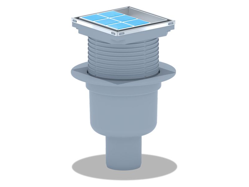 Трап вертикальный регулируемый АНИ Пласт TA5912 выпуск 50 мм с решеткой из нержавеющей стали 150х150 мм под плитку