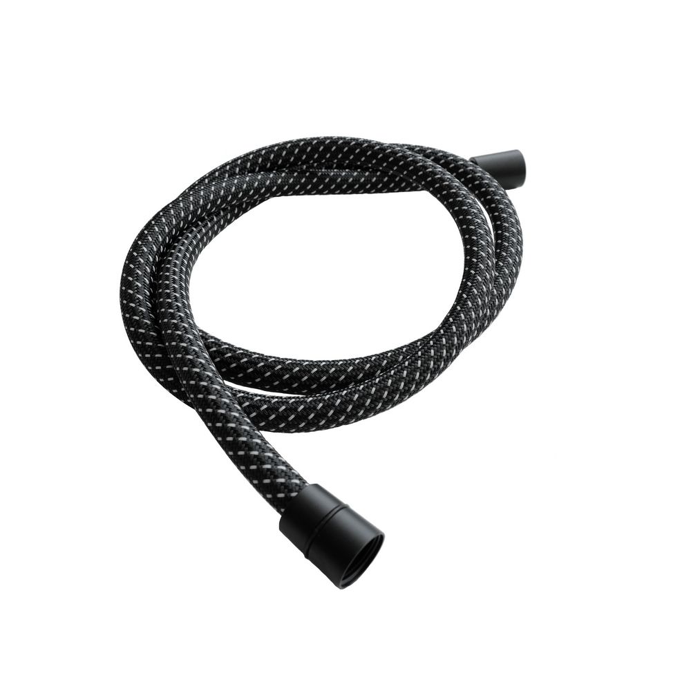 AQM1503MB  Шланг душевой текстиль, ПВХ, 1500 мм, с латун конич гайкой и защитой от скруч, черный мат