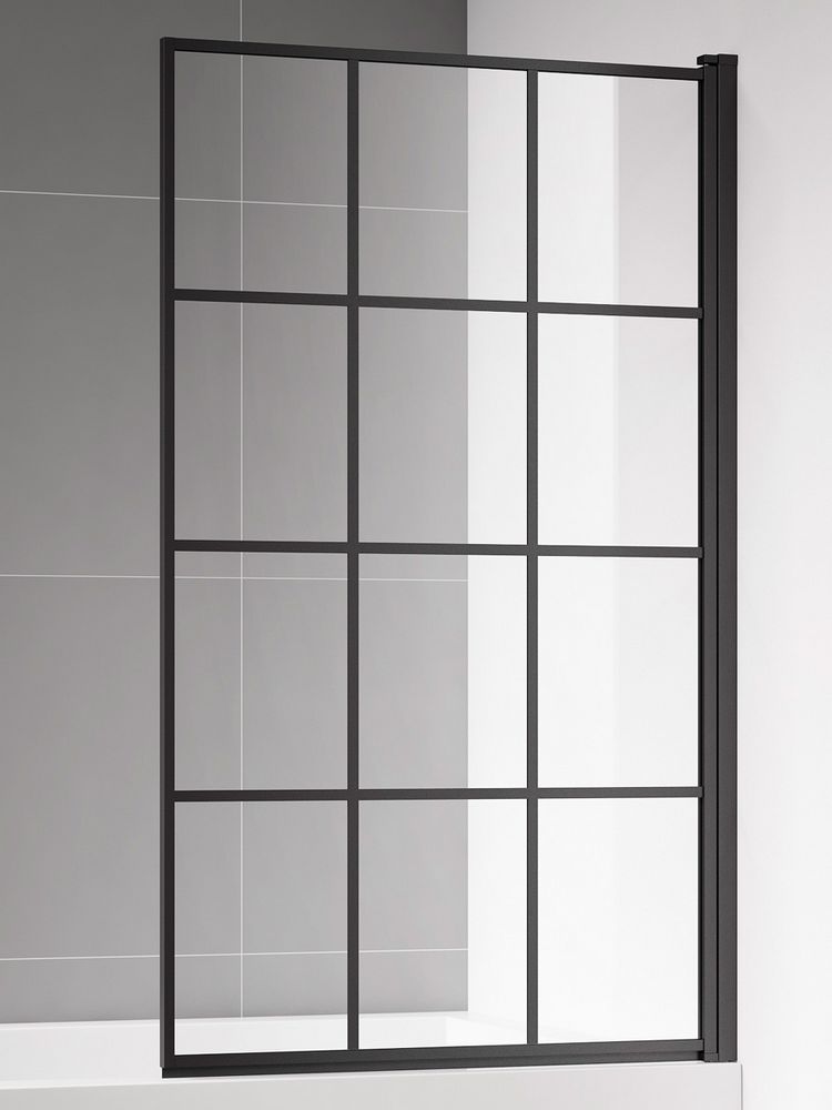 Шторка на ванну 800*1400мм., стекло 6мм, цвет профиля матовый черный. Вертикальные и горизонтальные декоративные линии.
