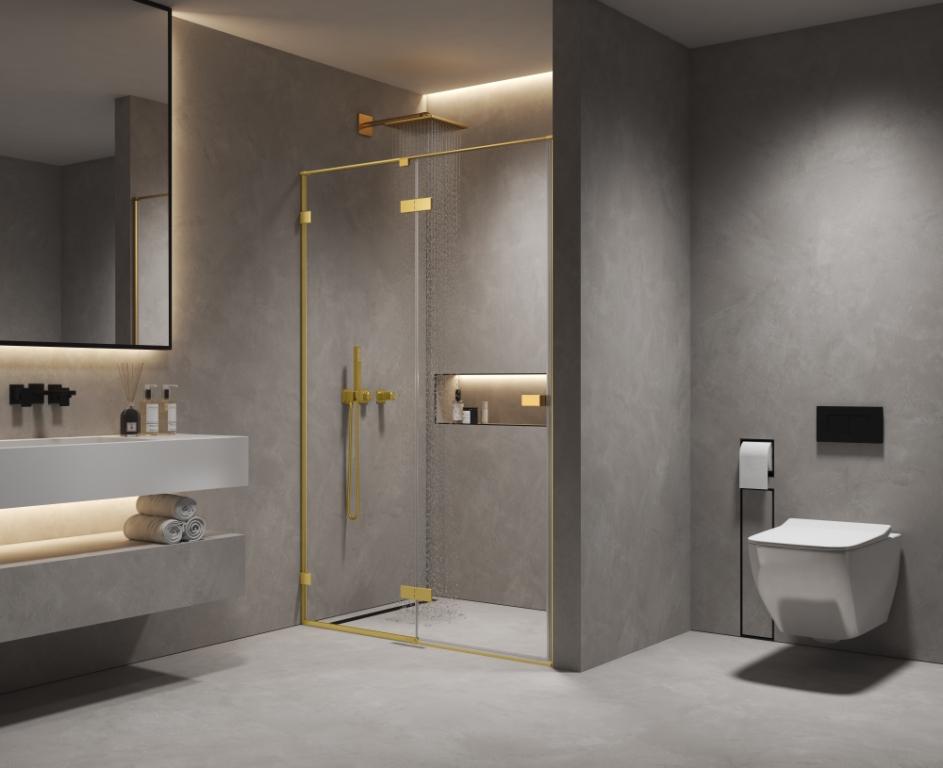 Душевая дверь в нишу 1200х2000 мм, стекло 8 мм, прозрачное, EasyClean, цвет профиля золото шлифованное