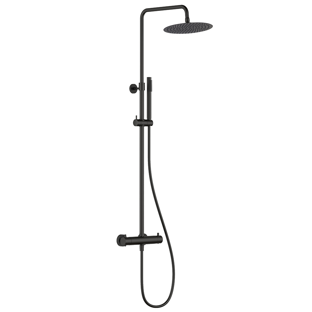 AQM8008MB   Душ. сист. с терм. и изливом, Ø250, лейка 3 реж,  высота 1100-1500мм, Черный матовый