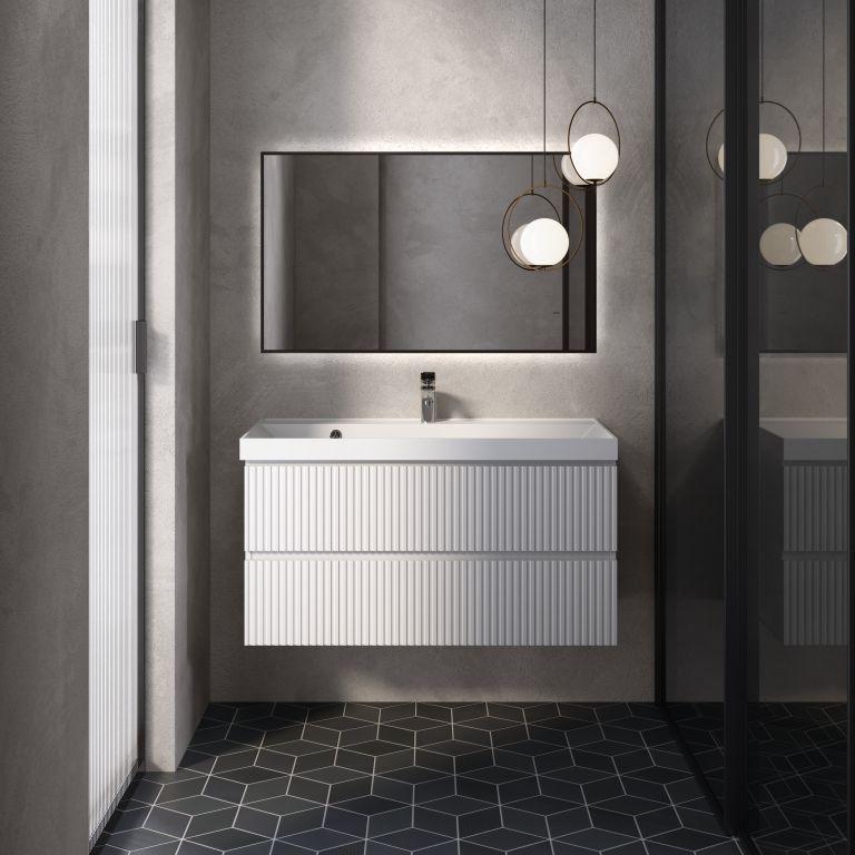 AQM900410WH "S4" тумба под умывальник подвесная 100  цвет белый глянец.