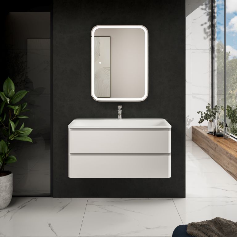 AQM900410WH "S4" тумба под умывальник подвесная 100  цвет белый глянец.