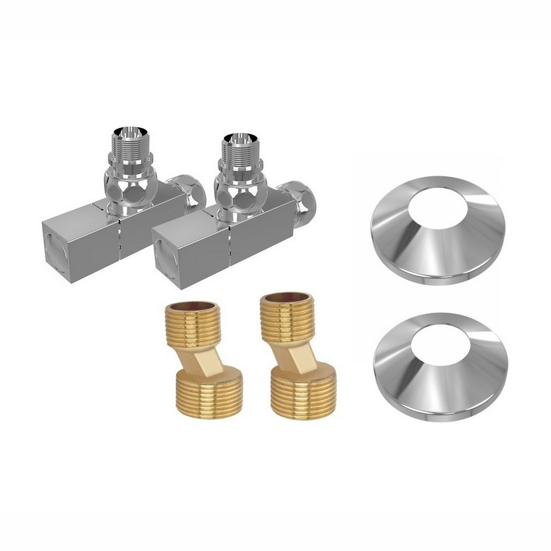 Комплект фитингов для нижнего подключения водяных полотенцесушителей типа лесенка Aquatek ( вентиль квадрат г/ш 3/4х1/2 - 2 шт + эксцентрик 3/4х1/2 - 2 шт + отражатель 3/4 - 2 шт), цвет хром
