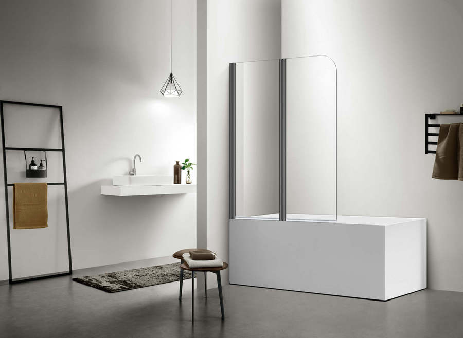 AQ DEL SBA 10015GM Шторка на ванну двухэлементная, поворотная 1000X1500 профиль оружейная сталь, стекло прозрачное