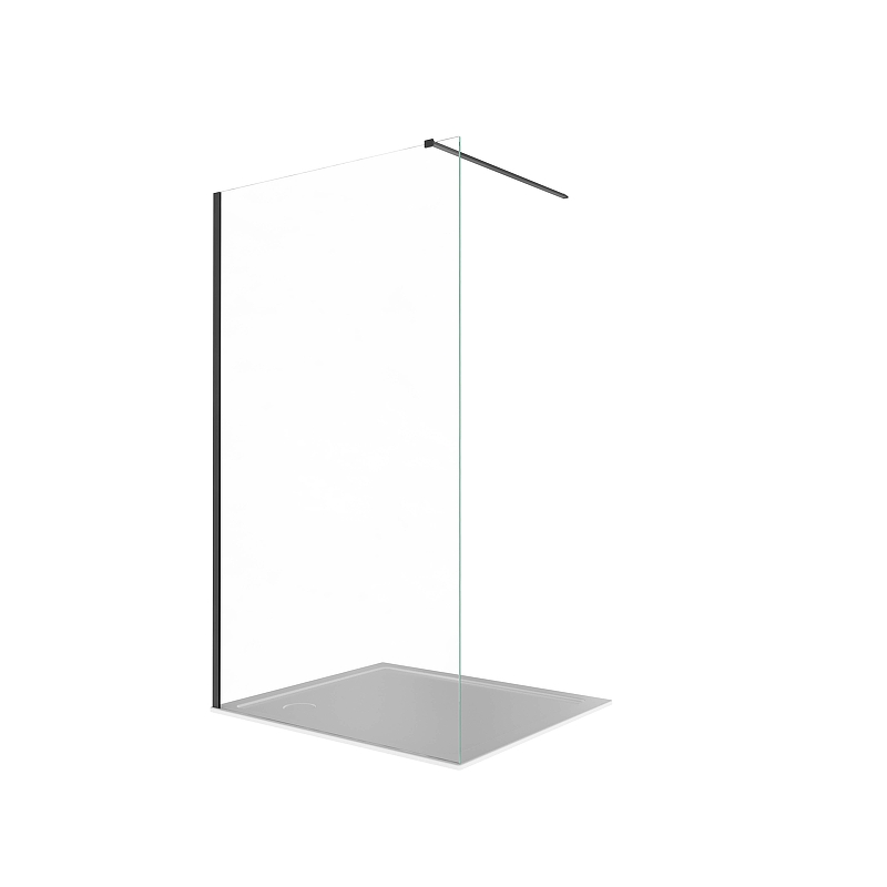 Душевая перегородка Walk In 100см, с держателем 1200мм, профиль черный матовый, Aquatek AQ.WI.100.1BL, стекло прозрачное, закаленное