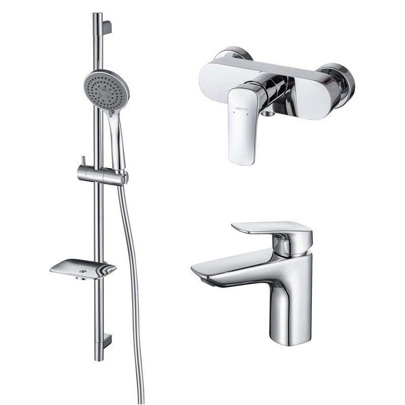 AQ1010CR ВЕГА смеситель для раковины 97 без донного клапана + AQ1060CR ВЕГА смеситель для душа + AQ2011CR ВЕГА душевой гарнитур 3jet 73см