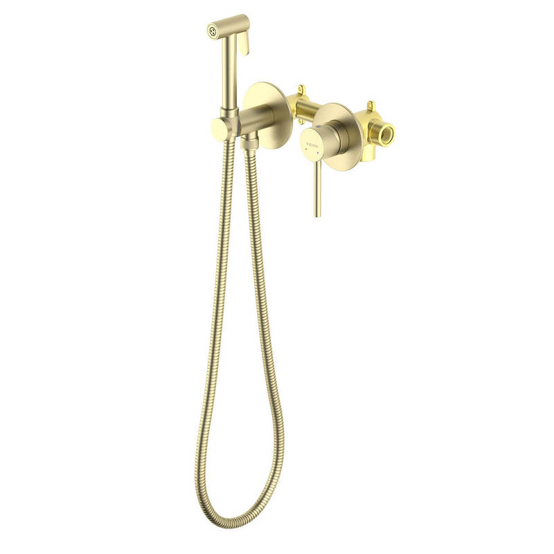 AQ1020BG ЕВРОПА комплект для гигиенического душа встроенный (смеситель + гигиеническая лейка + шланг), шлиф. золото