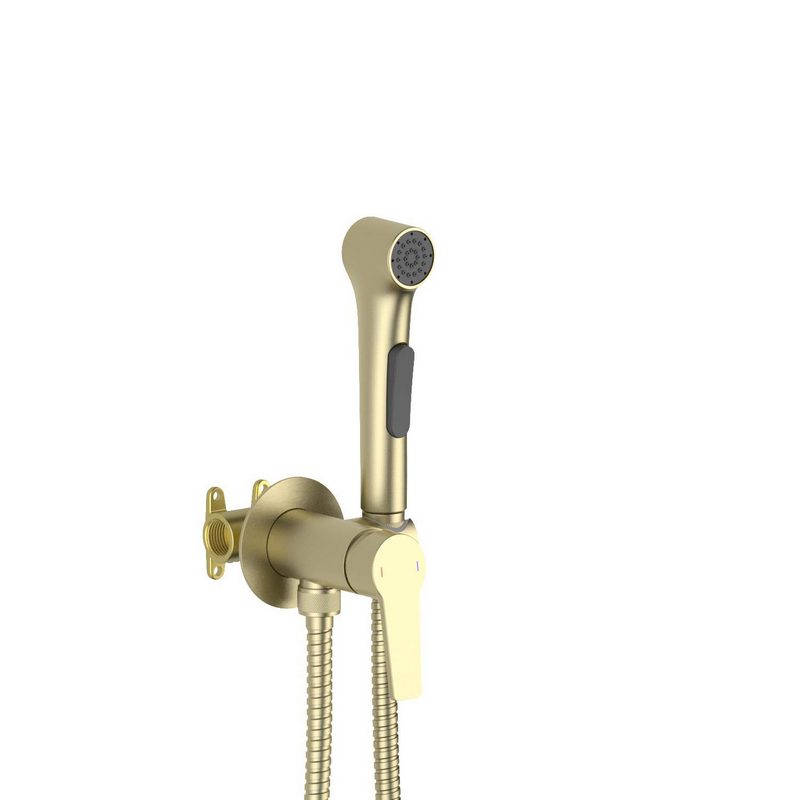AQ1020BG ЕВРОПА комплект для гигиенического душа встроенный (смеситель + гигиеническая лейка + шланг), шлиф. золото