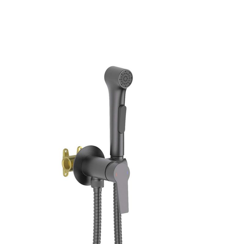 AQ1819BGM НИКА комплект для гигиенического душа встроенный (смеситель + гигиеническая лейка + шланг), оружейная сталь