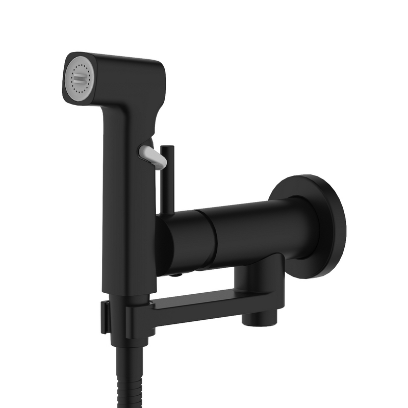 AQ1020MB ЕВРОПА комплект для гигиенического душа встроенный (смеситель + гигиеническая лейка + шланг), матовый черный