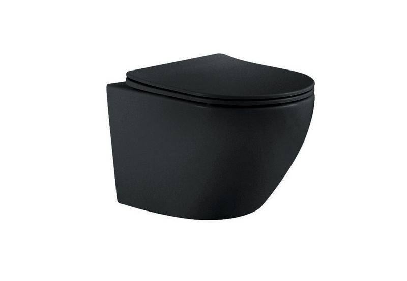 Унитаз подвесной безободковый AQUATEK ЕВРОПА AQ1901-MB 525*360*320 мм, черный матовый, горизонтальный выпуск, тонкое сиденье с механизмом плавного закрывания, крепеж