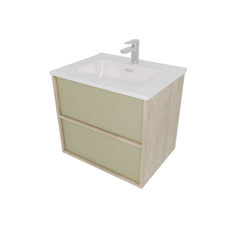 Комплект мебели: Тумба ЛИБРА с раковиной 60см, 2 ящика с системой push-to-open, корпус дерево,цвет фасадов шалфей зеленый
