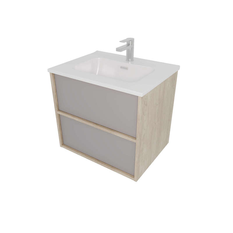 Комплект мебели: Тумба ЛИБРА с раковиной 60см, 2 ящика с системой push-to-open, корпус дерево,цвет фасадов серый туман