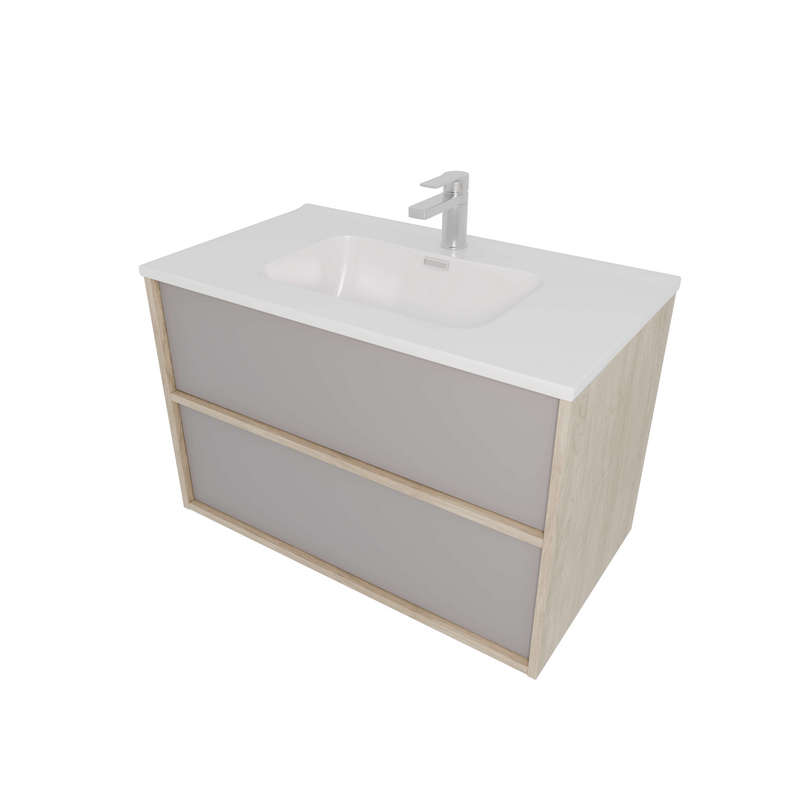Комплект мебели: Тумба ЛИБРА с раковиной 80см, 2 ящика с системой push-to-open, корпус дерево,цвет фасадов серый мат