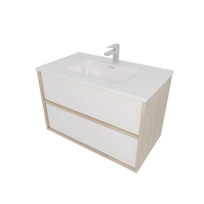 Комплект мебели: Тумба ЛИБРА с раковиной 80см, 2 ящика с системой push-to-open, корпус дерево,цвет фасадов белый мат