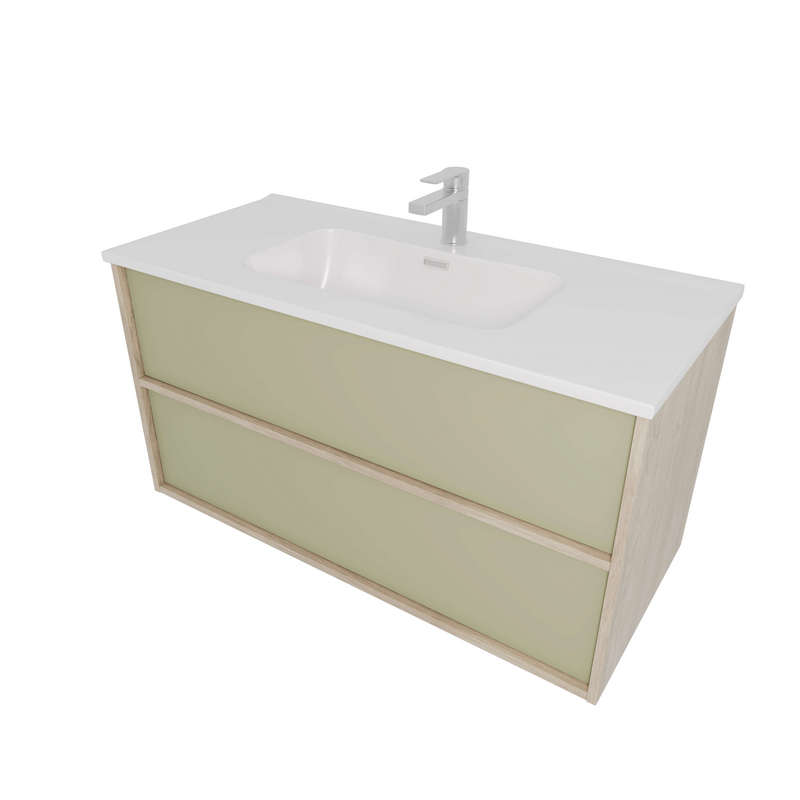 Комплект мебели: Тумба ЛИБРА с раковиной 100см, 2 ящика с системой push-to-open, корпус дерево,цвет фасадов шалфей зеленый