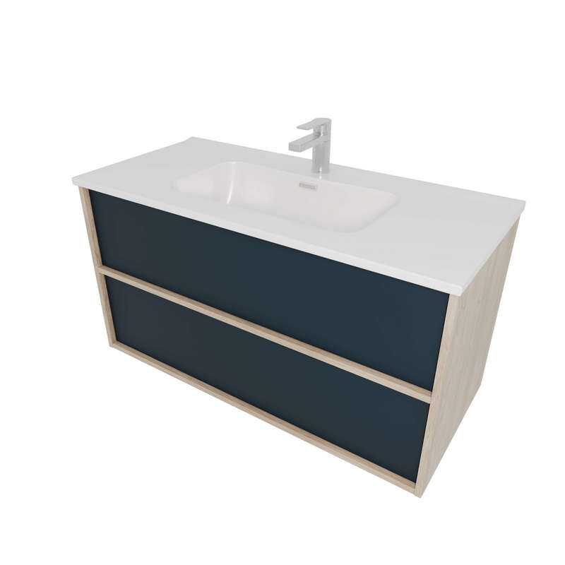 Комплект мебели: Тумба ЛИБРА с раковиной 100см, 2 ящика с системой push-to-open, корпус дерево,цвет фасадов шалфей зеленый