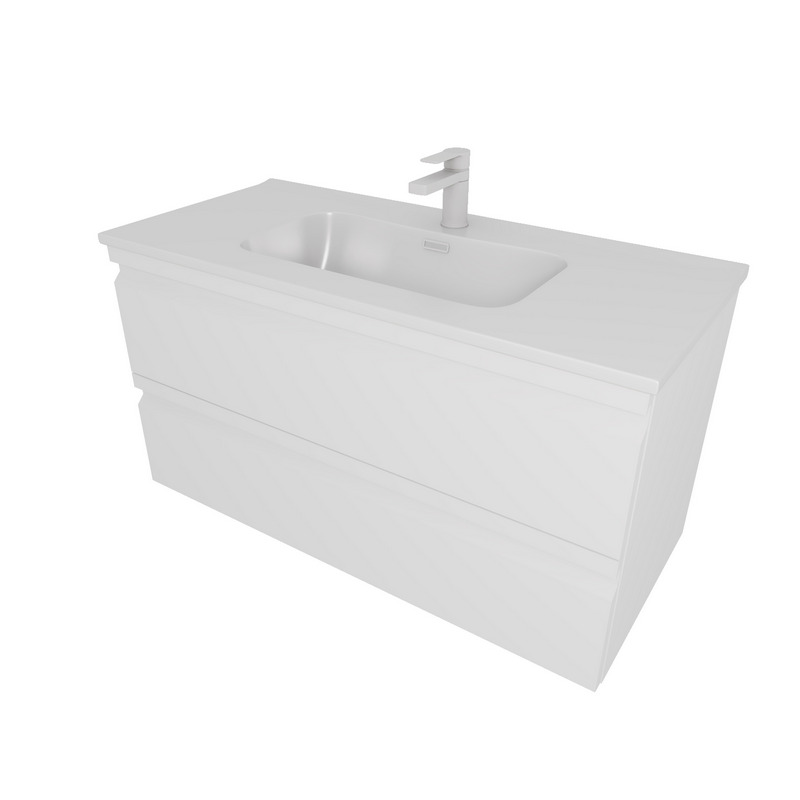 AQ77100-MW Комплект мебели:Тумба 100 см ВЕГА с раковиной AQ4100-00, 2 ящика,цвет белый мат