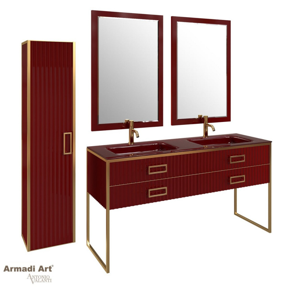866-080-RG Тумба Monaco 80см h84см бордо глянец + золото под раковину моноблок