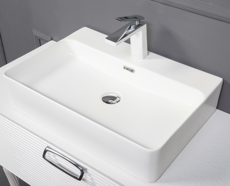 874 Раковина керамика прямоугольная под смеситель белая Vallessi