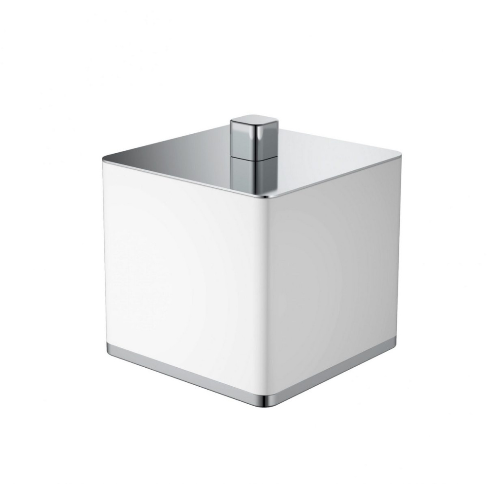 10964-W-CR Стакан для ватных дисков квадратный белый-Хром