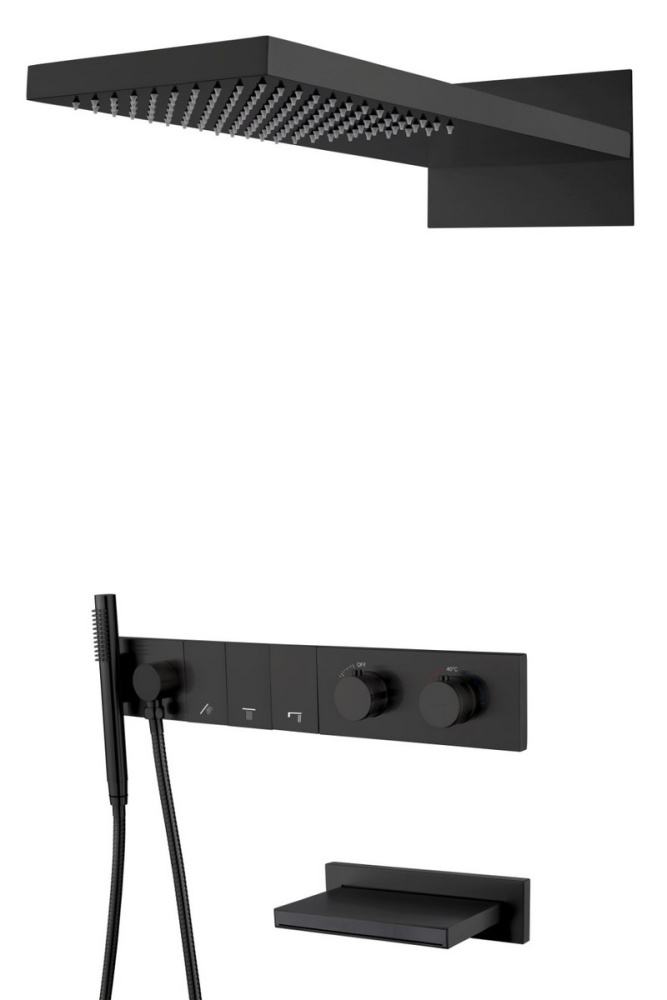 133-2-B Встроенная душевая система с изливом Zodiac с термостатом, трехпозиционная Black
