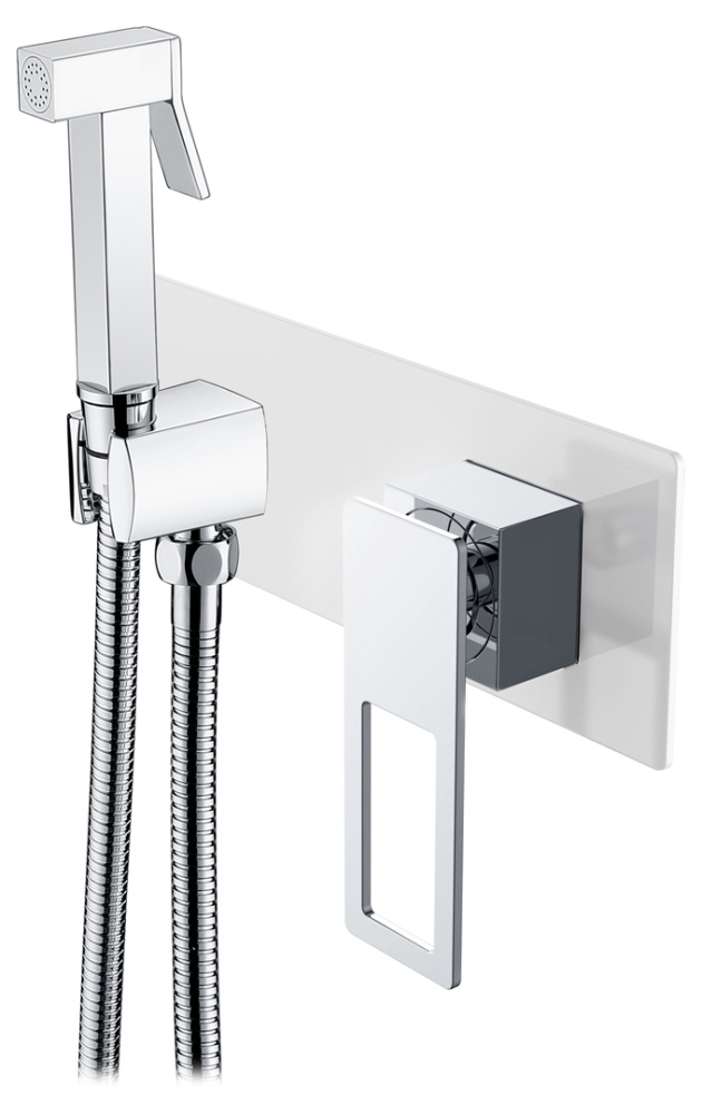 147-WCR Гигиеническая лейка Q со смесителем White Chrome (комплект)