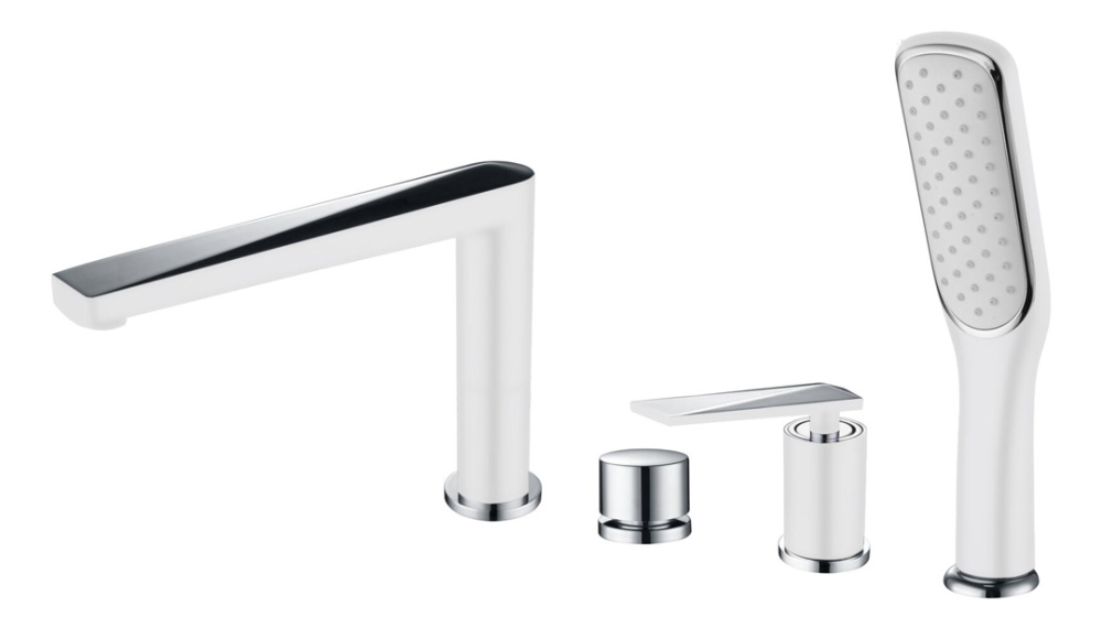 370-W Смеситель врезной на борт ванны Venturo белый + Хром