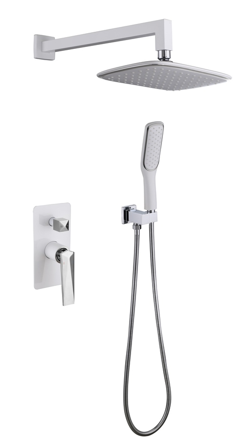 374-W Смеситель встроенный + верхний душ + ручной душ белый-Хром