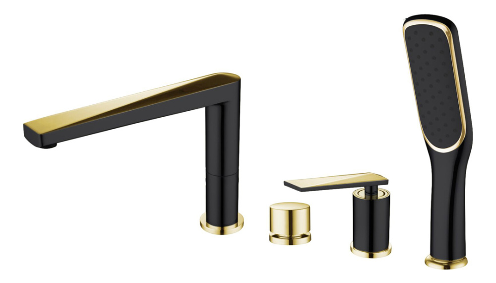 380-B Смеситель врезной на борт ванны Venturo черный + золото
