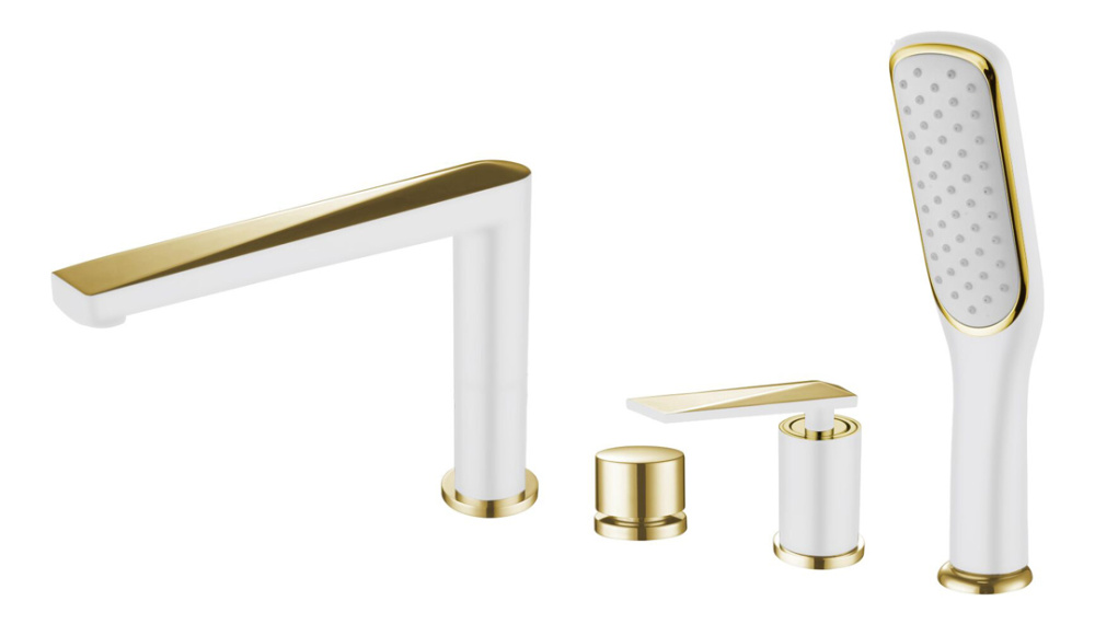 380-W Смеситель врезной на борт ванны Venturo белый + золото