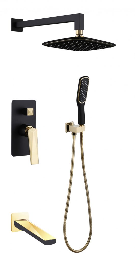 384-B-2 Смеситель встроенный с изливом черный-золото