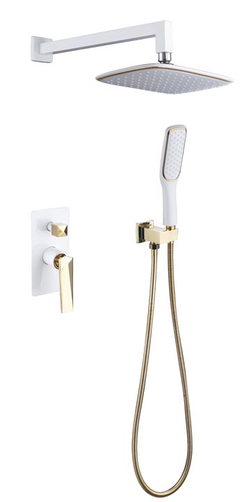 384-W Смеситель встроенный + верхний душ + ручной душ белый-золото