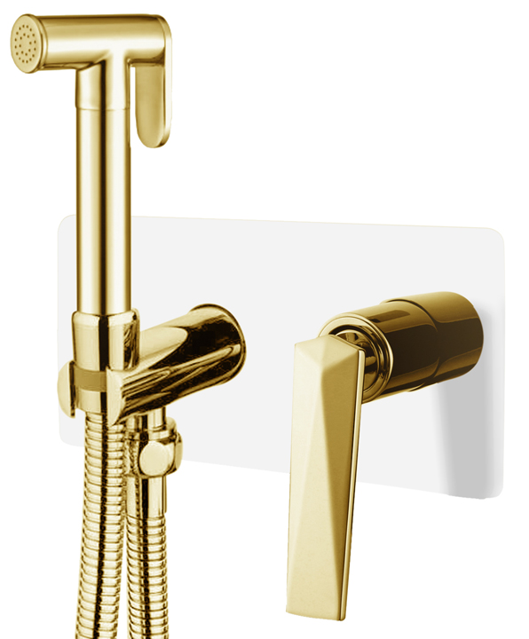 387-W Гигиеническая лейка со смесителем Venturo белый + золото